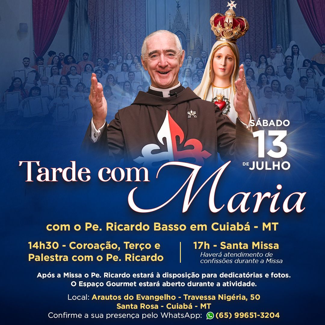 Em Cuiabá-MT, no sábado, dia 13 de julho, participe de uma tarde especial com as famílias consagradas a Nossa Senhora ou devotas d’Ela, e com os Arautos do Evangelho.